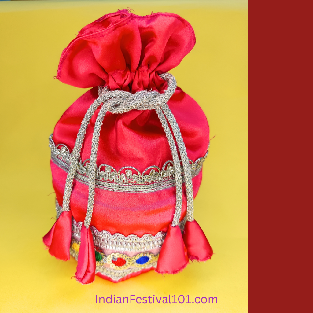 Perfect for Wedding Shagun, Karwa Chauth, Rakhi, Diwali, Mehendi, Haldi, Baby Shower, and Festival Gifting, this reusable potli bag brings charm and elegance to your celebrations.